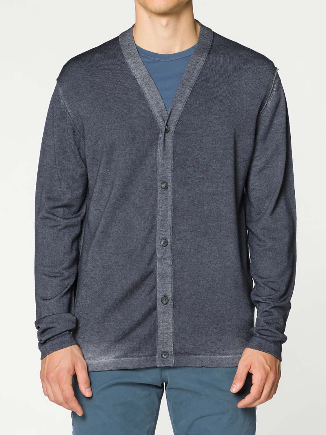 Oil Wash Virgin Wool Cardigan Grey