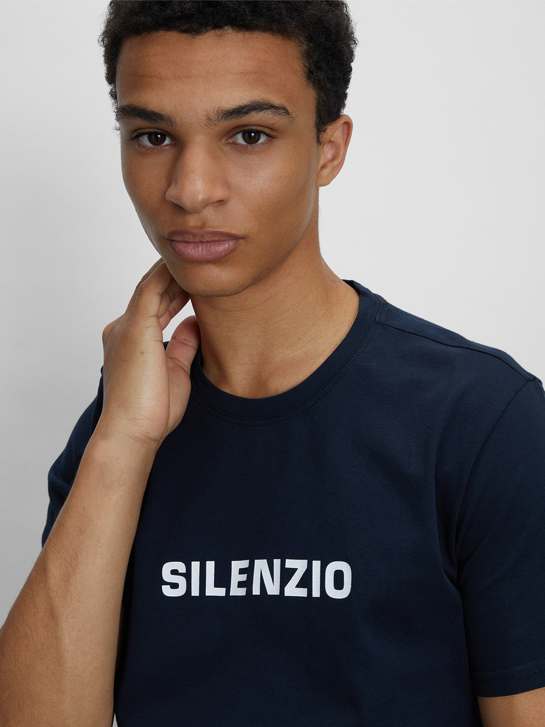 Aspesi's Silenzio T-shirt in navy is designed for a relaxed silhouette and is perfect for effortless layering. It is skillfully fashioned from a lightweight and breathable cotton jersey, offering a soft texture. This t-shirt- is tailored to a regular fit, featuring a classic crew neck and flag detail sporting the Aspesi logo.