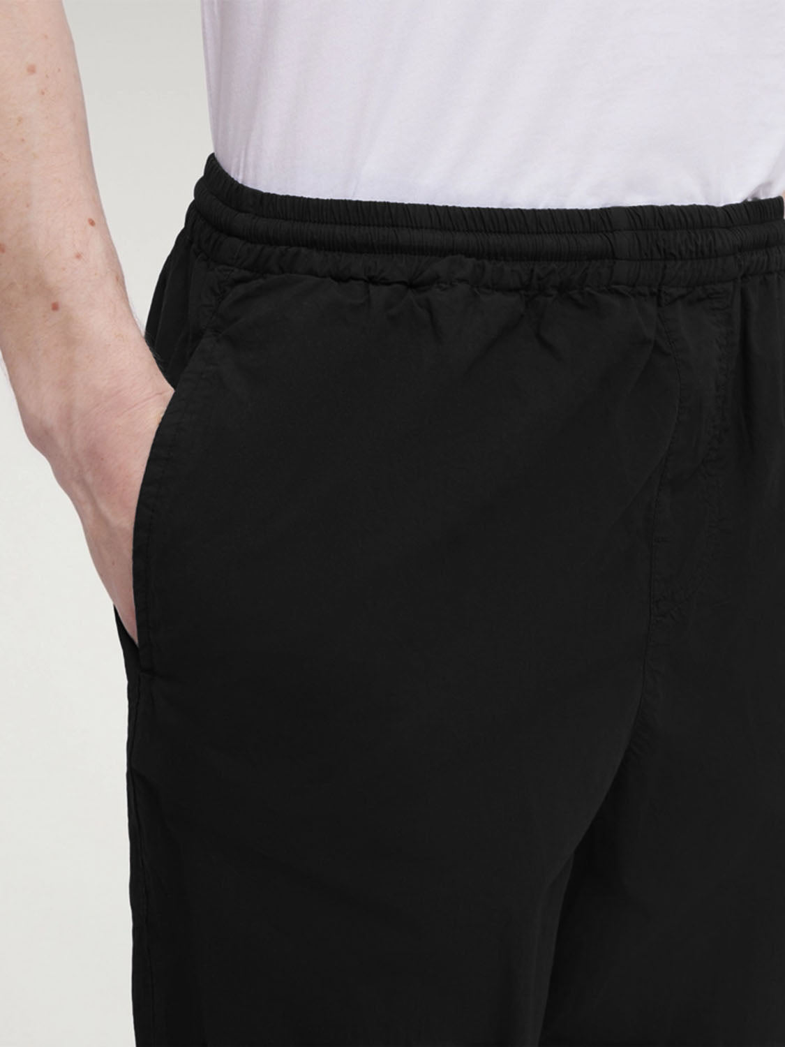 Discover the comfort of garment-dyed cotton pants in Aspesi's Ventura pants. Soft and lightweight, they offer a fluid and washed look. The regular fit, elastic waist, and drawstring ensure a customizable fit, while side and back pockets add functionality. Versatile and stylish for any occasion.