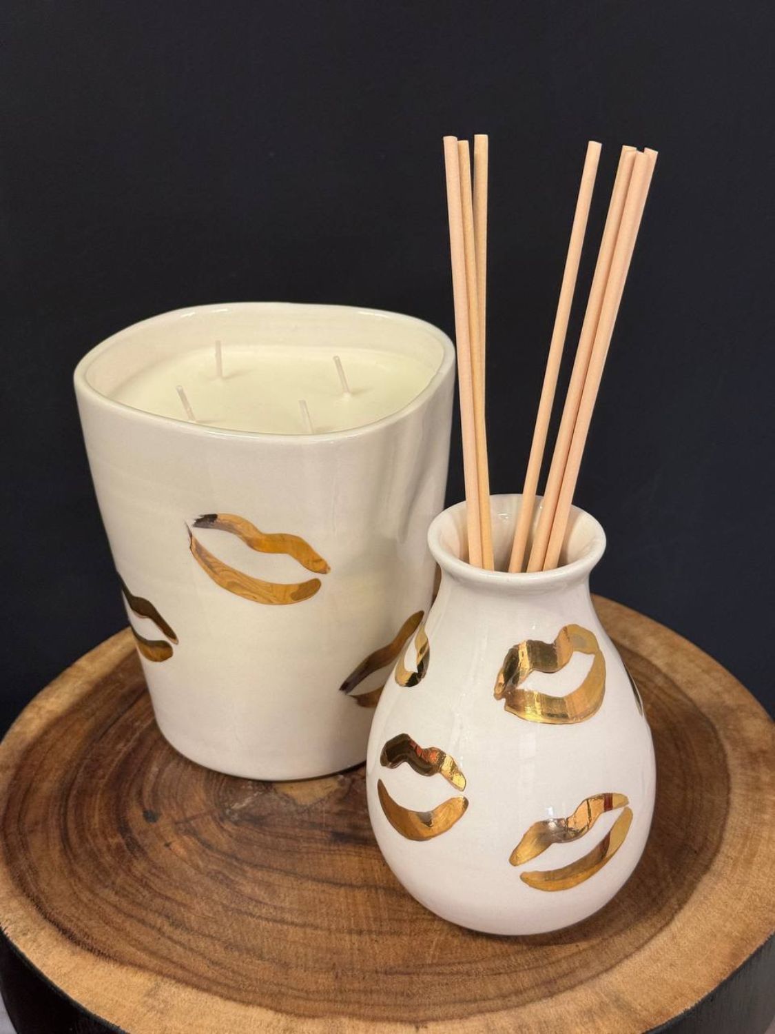 Hand-crafted and adorned with Rhea Kalo’s signature 24K golden lips, this diffuser transforms any interior into a sanctuary of elegance. Its sculptural silhouette embodies the designer’s distinctive balance of warmth and sophistication, a modern keepsake as much as a fragrance vessel.