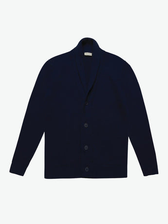Shawl Collar Distressed Cardigan Virgin Wool Navy