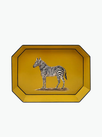 The Les Ottomans Zebra Tray brings vibrant charm to your home with its artistic, hand-painted zebra illustration. Handcrafted from iron, this exquisitely designed tray showcases a hand-painted illustration of a Zebra against a backdrop of yellow, making it an elegant and whimsical choice for serving guests at your next dinner party.