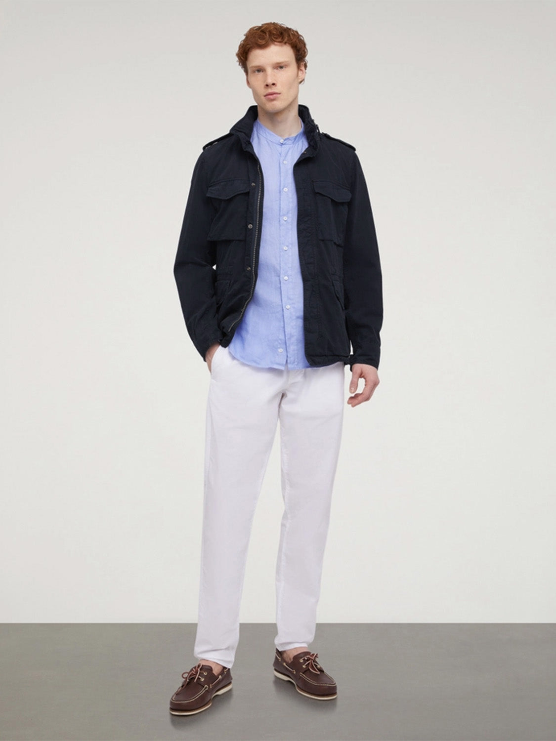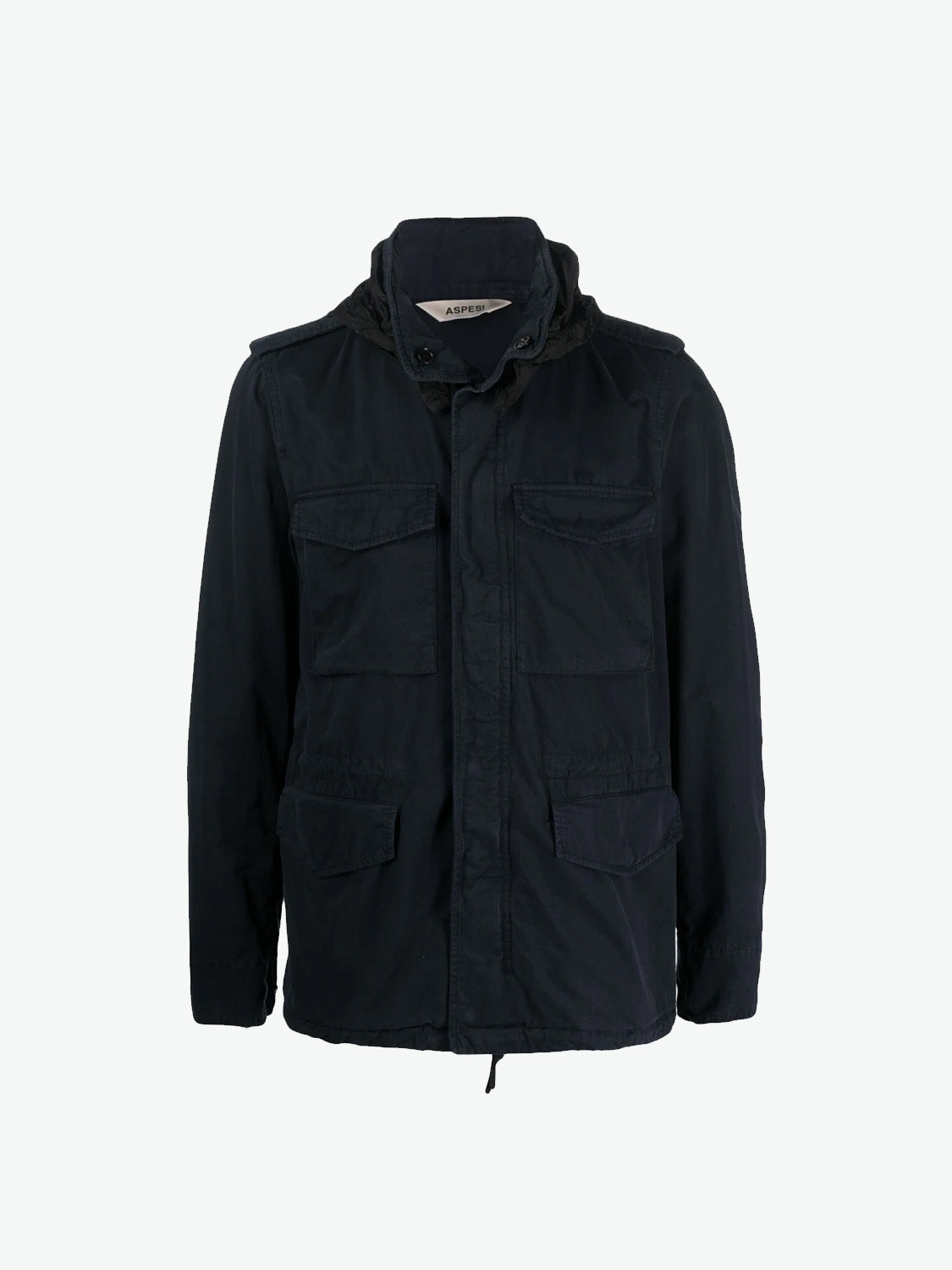 Introducing Aspesi's Mini Field Jacket, crafted from cotton gabardine, a robust fabric offering a soft touch, compactness, and an anti-drip finish. The stone-wash treatment adds a sophisticated vintage effect to this garment, featuring a concealed button and zip fastening, a windproof flap, and a micro-injected Aspesi logo on the zipper pull. With four practical pockets, a detachable foldaway hood, and epaulets, this jacket is designed for convenience. The drawstring waist allows for easy adjustment.