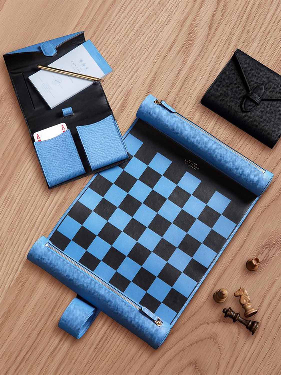 - Two packs of Smythson gilt-edged playing cards-one Navy and one Nile Blue.