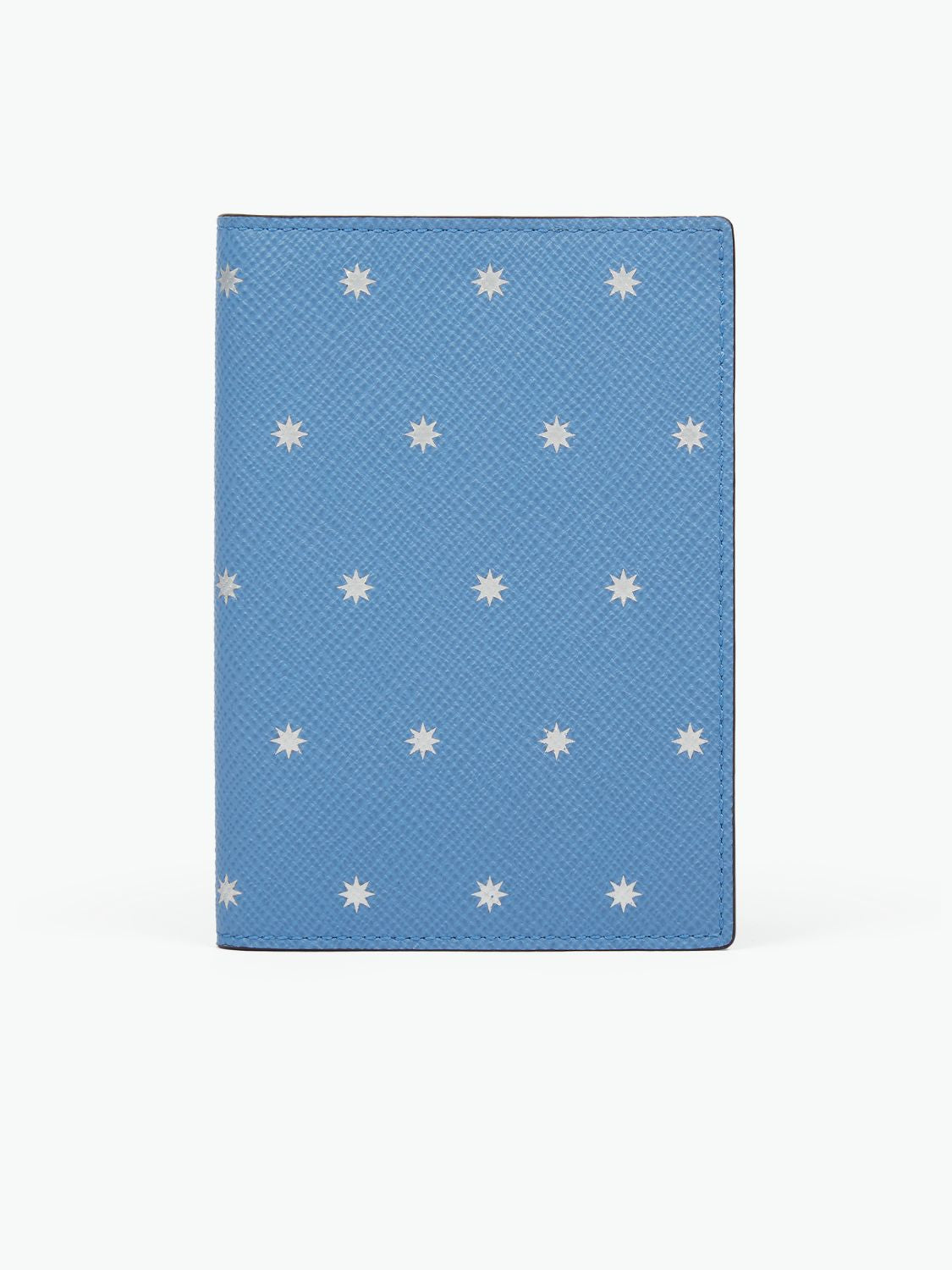- Passport cover in Stars Nile Blue cross-grain calf leather.