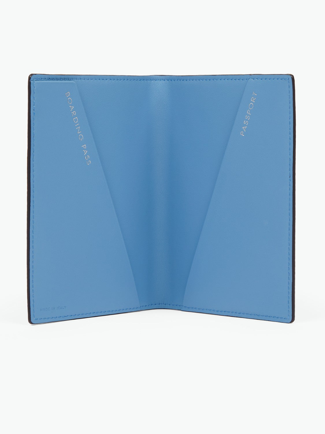 - Two slanted gold-stamped pockets for passport and boarding pass.